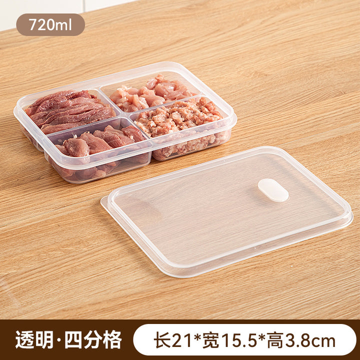 Sealed grid kitchen food storage box transparent food grade vegetable frozen meat sub-packaging refrigerator fresh storage box