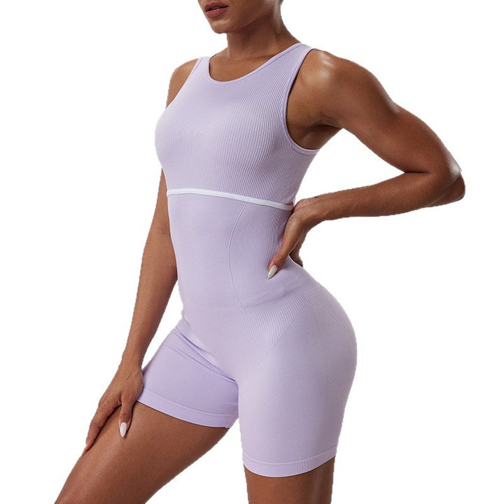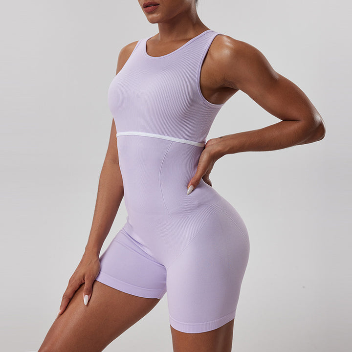 Seamless thread sports yoga onesie women's hollow beauty back wide shoulder straps outdoor running fitness shorts onesie