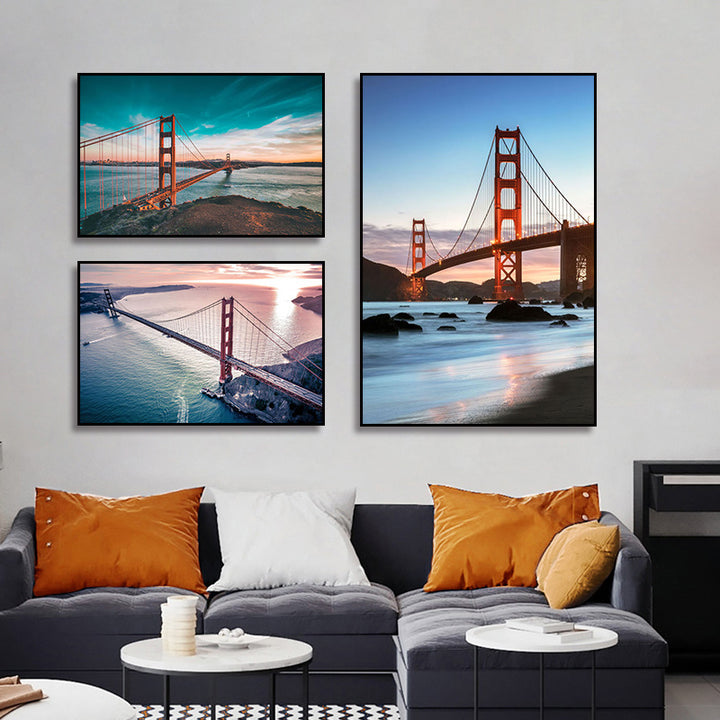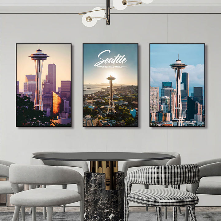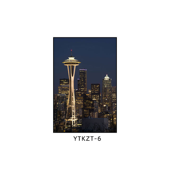 Seattle decorative painting Space Needle Tower American landscape architecture living room hanging painting modern simple Golden State Bridge mural