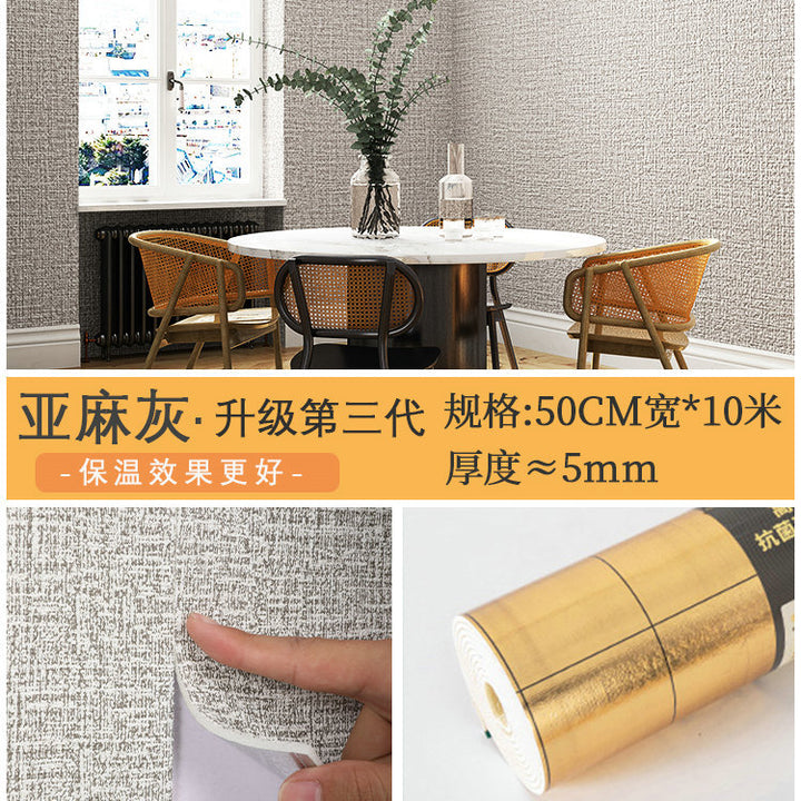 Self-adhesive adhesive adhesive wallpaper wallpaper waterproof and moisture-proof ultra-thick sound insulation linen diatom mud living room bedroom...
