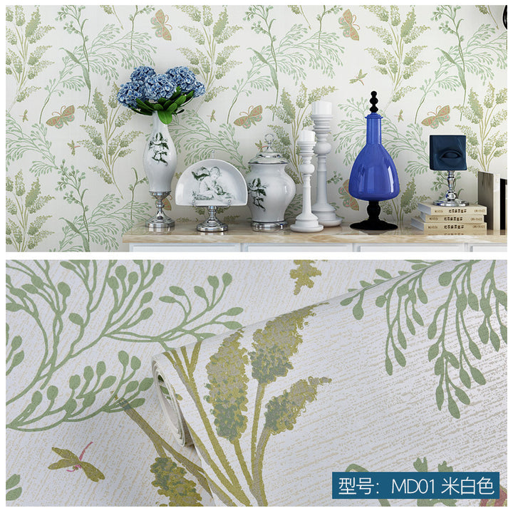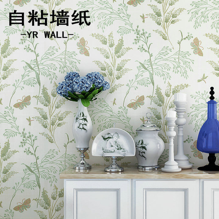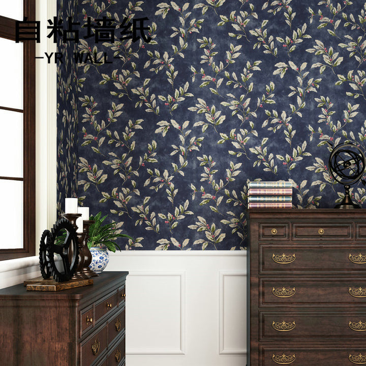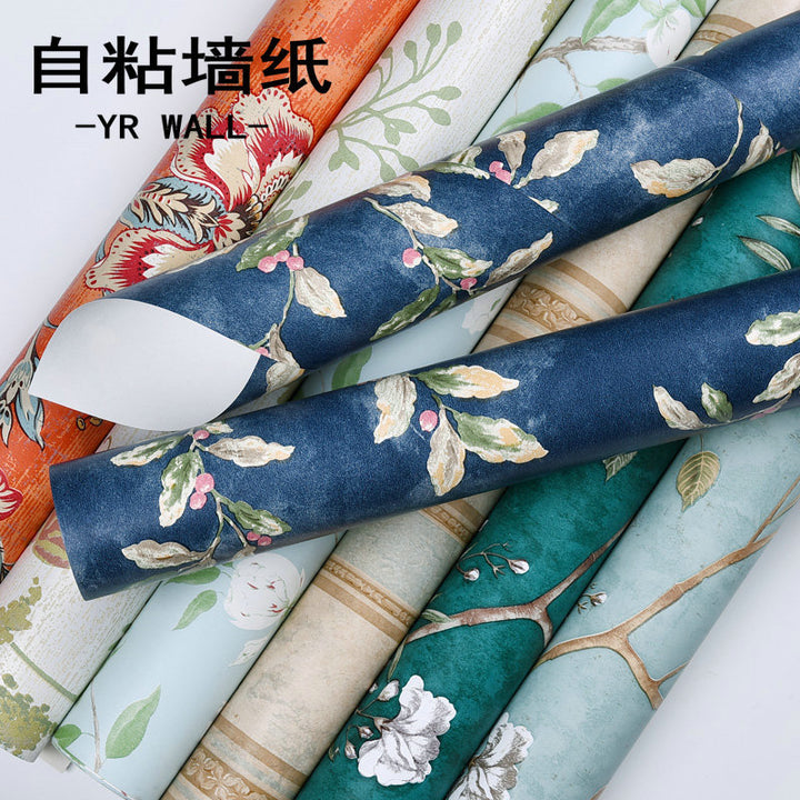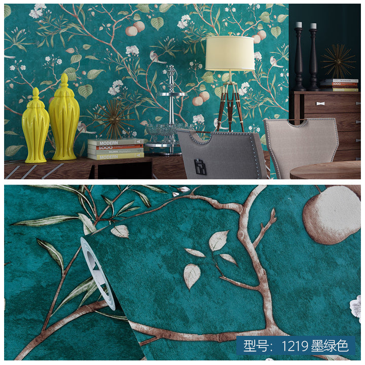 Self-adhesive adhesive non-woven wallpaper American retro flower and bird big flower living r...