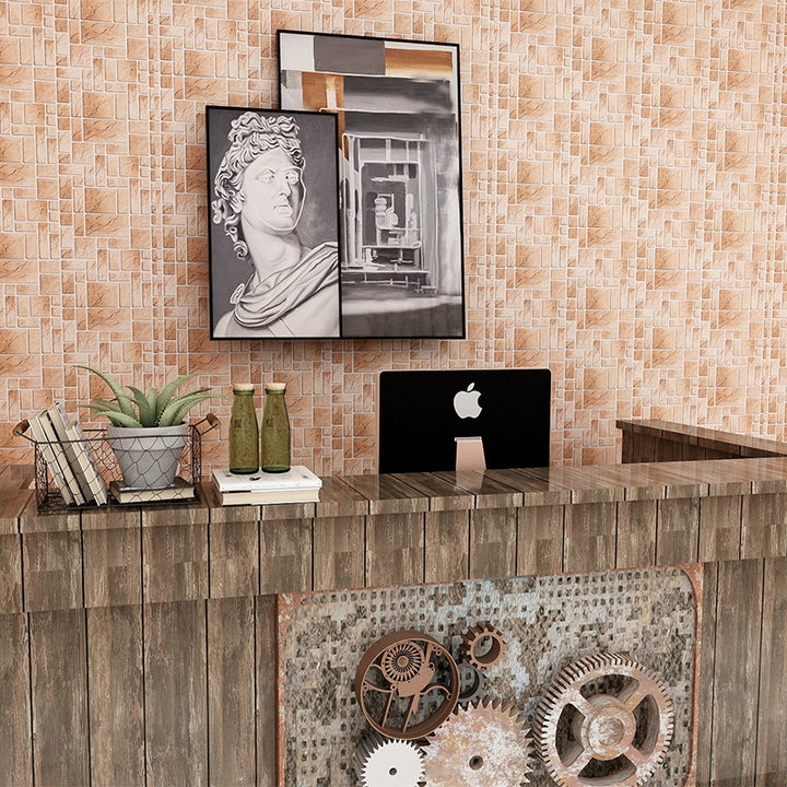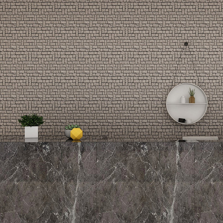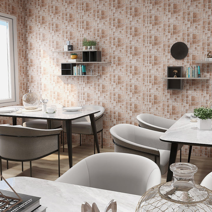 Self-adhesive imitation porcelain brick pattern wallpaper waterproof sticker non-slip thickened pearlescent living room kitchen bathroom bathroom r...