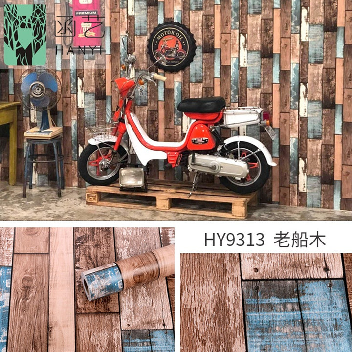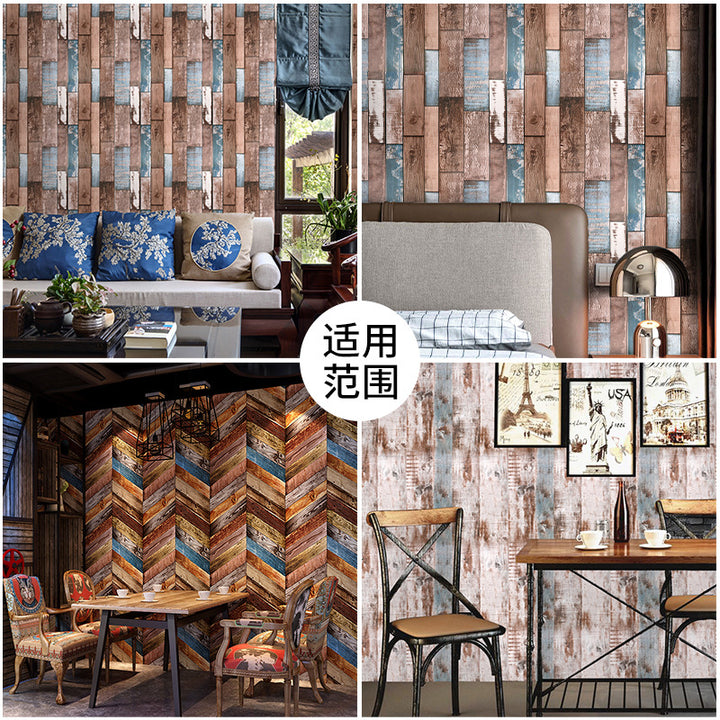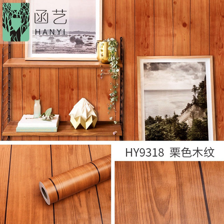 Self-adhesive wood grain decorative sticker waterproof wallpaper thickened tooling wall stick...