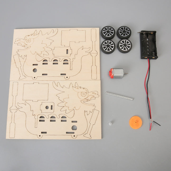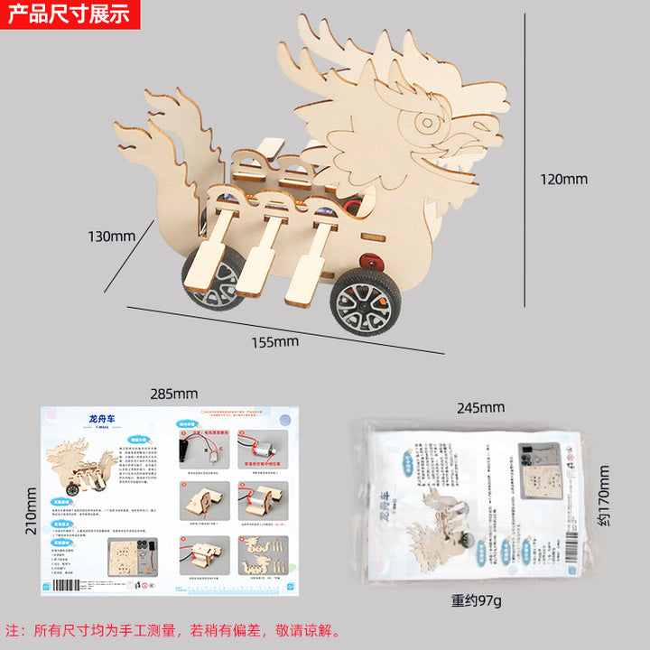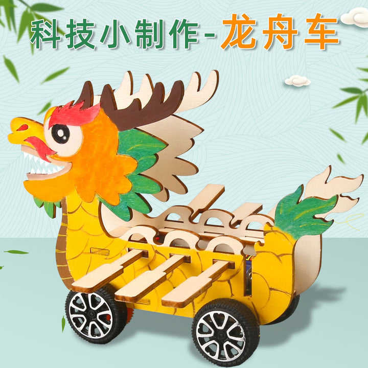 Self-made dragon boat car (dragon boat race) handmade DIY assembly technology small productio...