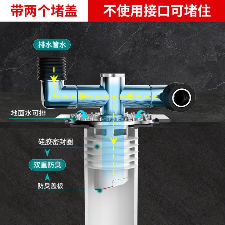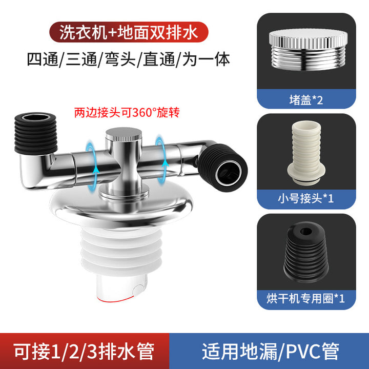 Sewer pipe three-way washing machine drain pipe floor drain joint port docking device sewer three-way four-way water flow