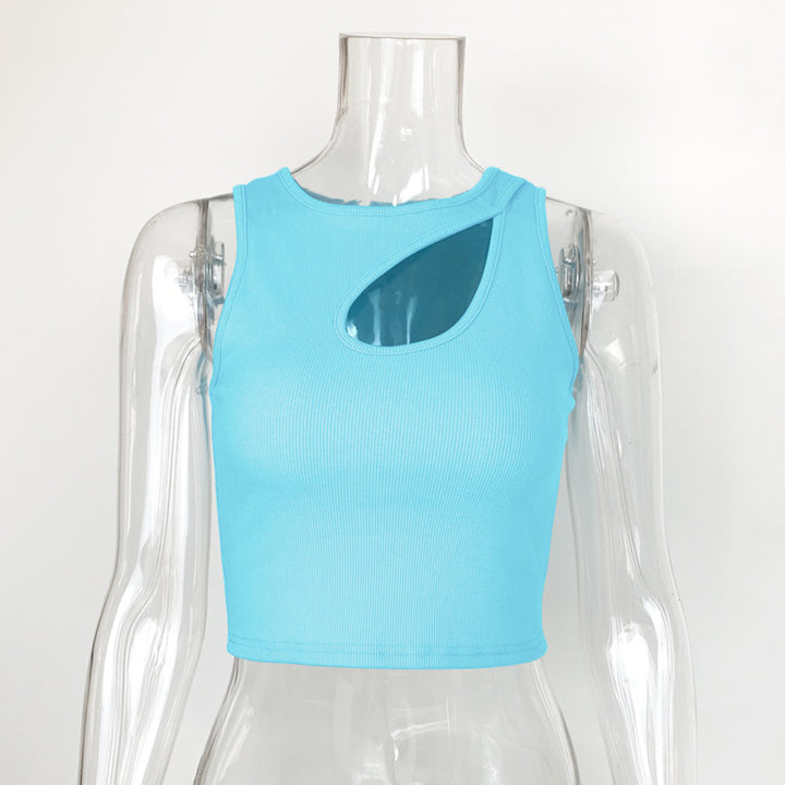 Sexy hollow threaded sling vest women's summer design sense niche Spice Girl inner short back outer top