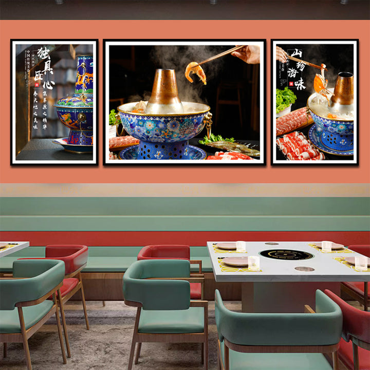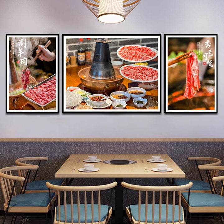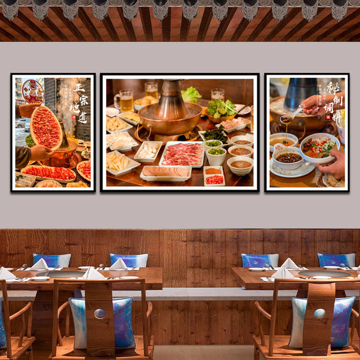 Sheep scorpion hot pot shop wall decoration painting old Beijing mutton background wall mural copper pot shabu meat poster hanging painting