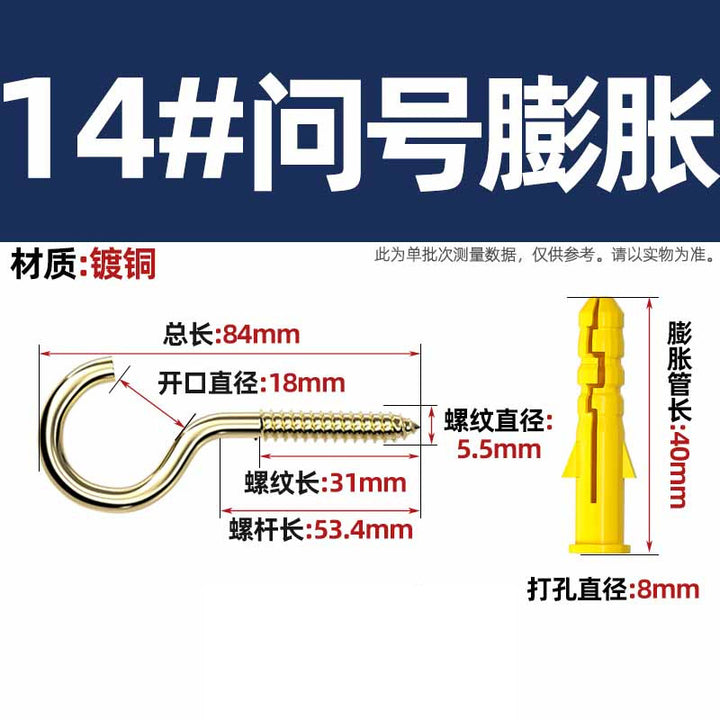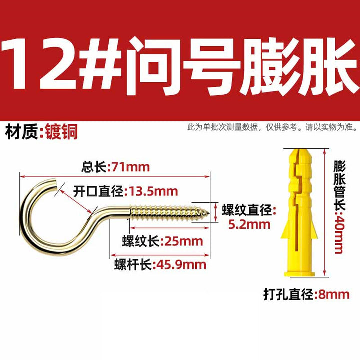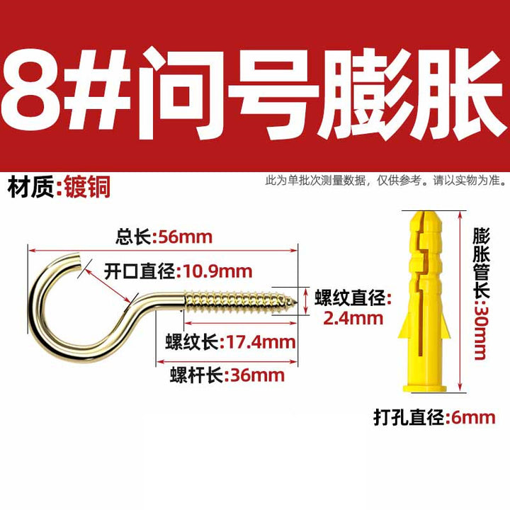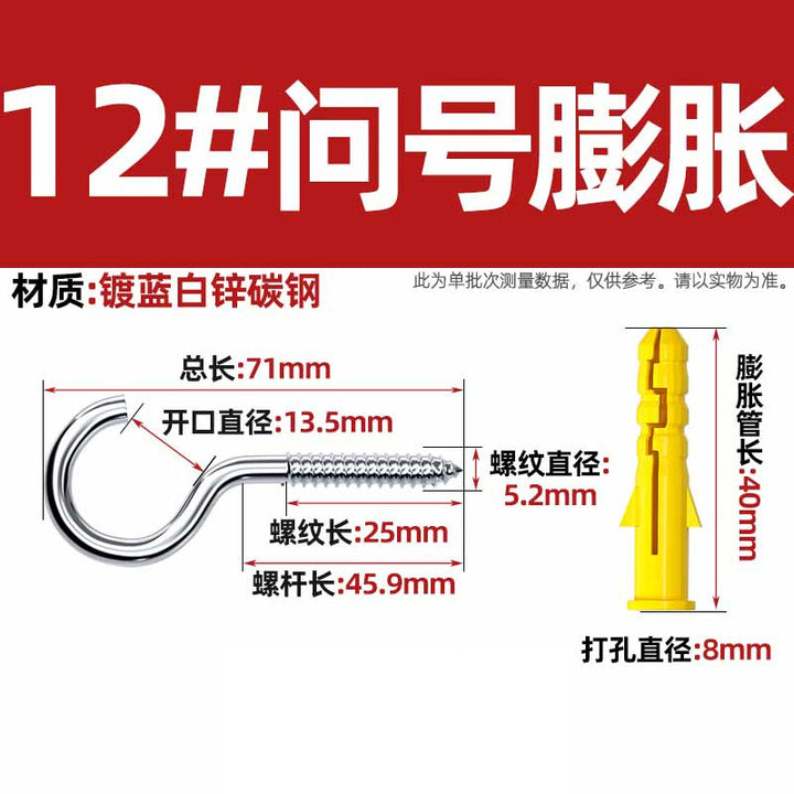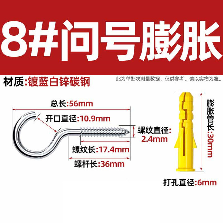 Sheep's eye screw Iron question mark hook with plastic expansion tube hook, sheephorn hand screw Self-tapping screw lifting ring
