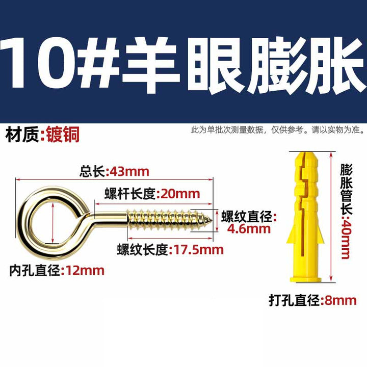 M6 * 30 (8 #question mark hook, copper plated + expansion tube) -1 set, M8 * 40 (10 #question mark hook, copper plated + expansion tube) -1 set, M8 * 40 (12 #question mark hook, copper plated + expansion tube) -1 set, M8 * 40 (14 #question mark hook, copper plated + expansion tube) -1 set, M6 * 30 (8 #question mark hook, galvanized + expansion pipe) -1 set, M8 * 40 (10 #question mark hook, galvanized + expansion tube) -1 set, M8 * 40 (12 #question mark hook, galvanized + expansion tube) -1 set, M8 * 40 (14 #question mark hook, galvanized + expansion tube) -1 set, M6 * 30 (8 #sheep eye ring, copper plated + expansion tube) -1 set, M8 * 40 (10 #sheep eye ring, copper plated + expansion tube) -1 set, M8 * 40 (12 #sheep eye ring, copper plated + expansion tube) -1 set, M8 * 40 (14 #sheep eye ring, copper plated + expansion tube) -1 set, M6 * 30 (8 #sheep eye ring, galvanized + expansion tube) -1 set, M8 * 40 (10 #sheep eye ring, galvanized + expansion tube) -1 set, M8 * 40 (12 #sheep eye ring, galvanized + expansion tube) -1 set, M8 * 40 (14 #sheep eye ring, galvanized + expansion tube) -1 set, [Blue-plated zinc, single screw] Open question hook self-tapping 1 #-10 pieces, [Blue-plated zinc, single screw] Open question hook self-tapping 2 #-10 pieces, [Blue-plated zinc, single screw] Open question hook self-tapping 3 #-10 pieces, [Blue-plated zinc, single screw] Open question hook self-tapping 4 #-10 pieces, [Blue-plated zinc, single screw] Open question hook self-tapping 5 #-10 pieces, [Blue-plated zinc, single screw] Open question hook self-tapping 6 #-10 pieces, [Blue-plated zinc, single screw] Open question hook self-tapping 8 #-1, [Blue-plated zinc, single screw] Open question hook self-tapping 10 #-1, [Blue-plated zinc, single screw] Open question hook self-tapping 12 #-1, [Blue-plated zinc, single screw] Open question hook self-tapping 14 #-1, [Blue-plated zinc, single screw] Open question hook self-tapping 16 #-1, [Copper-plated, single screw] Open question hook self-tapping 1 #-10 pieces, [Copper-plated, single screw] Open question hook self-tapping 2 #-10 pieces, [Copper-plated, single screw] Open question hook self-tapping 3 #-10 pieces, [Copper-plated, single screw] Open question hook self-tapping 4 #-10 pieces, [Copper-plated, single screw] Open question hook self-tapping 5 #-10 pieces, [Copper-plated, single screw] Open question hook self-tapping 6 #-1, [Copper-plated, single screw] Open question hook self-tapping 8 #-1, [Copper-plated, single screw] Open question hook self-tapping 10 #-1, [Copper-plated, single screw] Open question hook self-tapping 12 #-1, [Copper-plated, single screw] Open question hook self-tapping 14 #-1, [Copper-plated, single screw] Open question hook self-tapping 16 #-1, [Blue-plated zinc, single screw] Closed sheep eye self-tapping 0 #-10 pieces, [Blue zinc plating, single screw] Closed sheep eye self-tapping 1 #-10 pieces, [Blue-plated zinc, single screw] Closed sheep eye self-tapping 2 #-10 pcs, [Blue-plated zinc, single screw] Closed sheep eye self-tapping 3 #-10 pieces, [Blue-plated zinc, single screw] Closed sheep eye self-tapping 4 #-10 pcs, [Blue-plated zinc, single screw] Closed sheep eye self-tapping 5 #-10 pieces, [Blue-plated zinc, single screw] Closed sheep eye self-tapping 6 #-10 pieces, [Blue-plated zinc, single screw] Closed sheep eye self-tapping 8 #-10 pieces, [Blue zinc plating, single screw] Closed sheep eye self-tapping 10 #-1 piece, [Blue zinc plating, single screw] Closed sheep eye self-tapping 12 #-1 piece, [Blue zinc plating, single screw] Closed sheep eye self-tapping 14 #-1 piece, [Blue zinc plating, single screw] Closed sheep eye self-tapping 16 #-1 piece, [Copper plating, single screw] Closed sheep's eye self-tapping 0 #-10 pcs, [Copper plating, single screw] Closed sheep eye self-tapping 1 #-10 pieces, [Copper plating, single screw] Closed sheep eye self-tapping 2 #-10 pcs, [Copper plating, single screw] Closed sheep eye self-tapping 3 #-10 pieces, [Copper plating, single screw] Closed sheep eye self-tapping 4 #-10 pcs, [Copper plating, single screw] Closed sheep eye self-tapping 5 #-10 pcs, [Copper plating, single screw] Closed sheep eye self-tapping 6 #-10 pcs, [Copper plating, single screw] Closed sheep eye self-tapping 8 #-1, [Copper plating, single screw] Closed sheep eye self-tapping 10 #-1, [Copper plating, single screw] Closed sheep eye self-tapping 12 #-1, [Copper plating, single screw] Closed sheep eye self-tapping 14 #-1 piece, [Copper plating, single screw] Closed sheep eye self-tapping 16 #-1 |