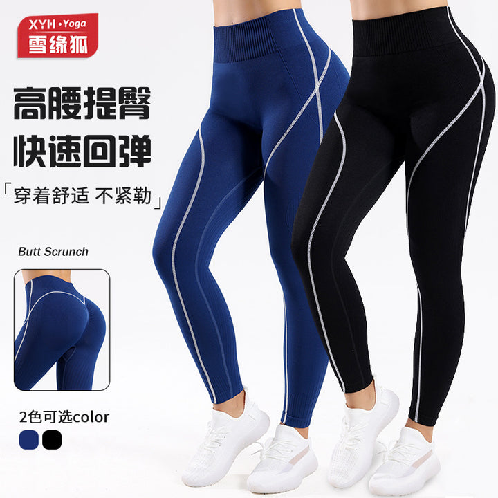 Shein popular contrasting color high waist threaded yoga pants women's running fitness primer peach hip tight seamless trousers