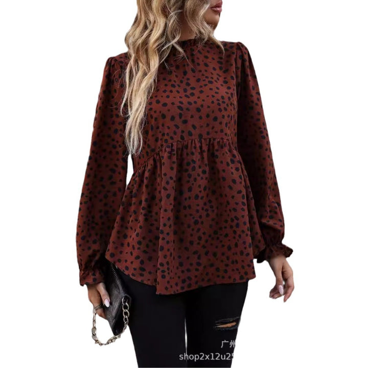 Shein2024 new temperament women's clothing polka dot pleated lace semi-turtleneck long-sleeved shirt fashion top