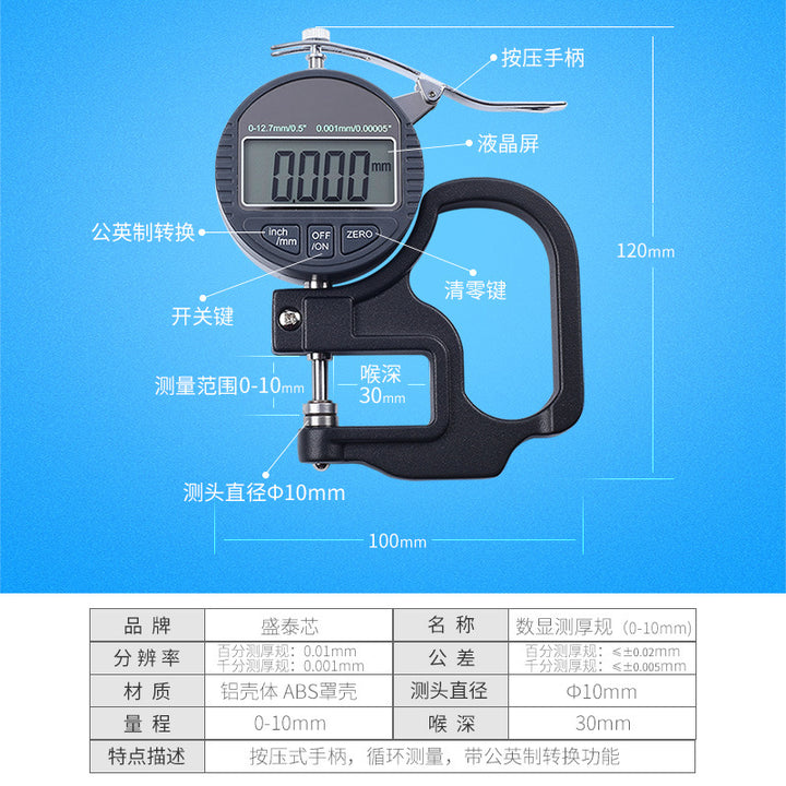 Shengtai Core Digital Display Percent Thousand Meter Thickness Gauge Gauge 0.001mm Paper Film Fabric Leather Sheet