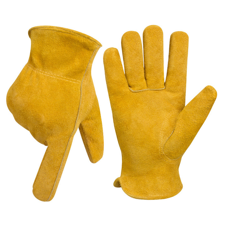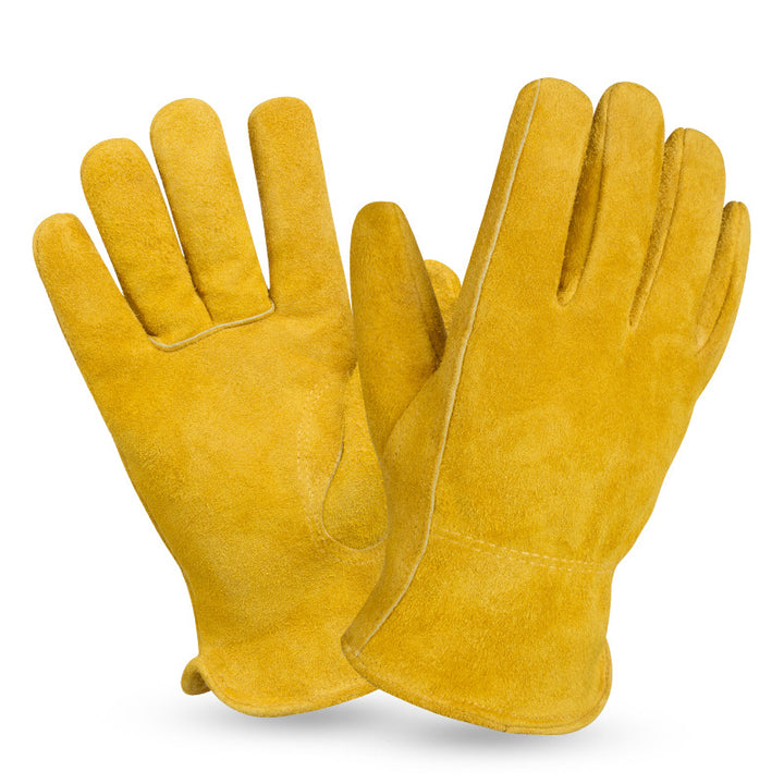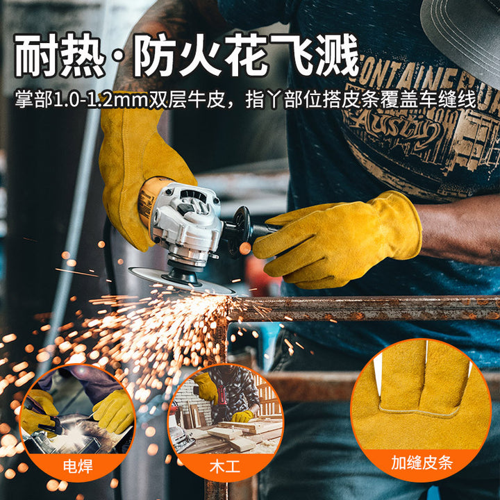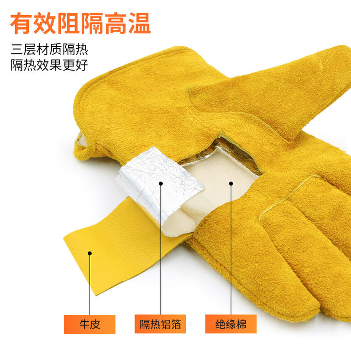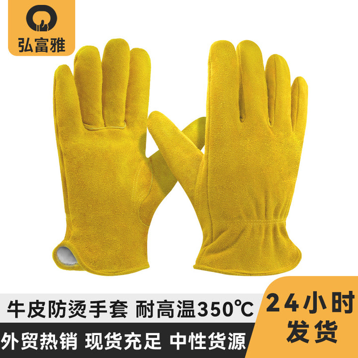 Short cowhide anti-scalding gloves heat-resistant 350 ° C outdoor camping barbecue high temperature protective gloves welder gloves