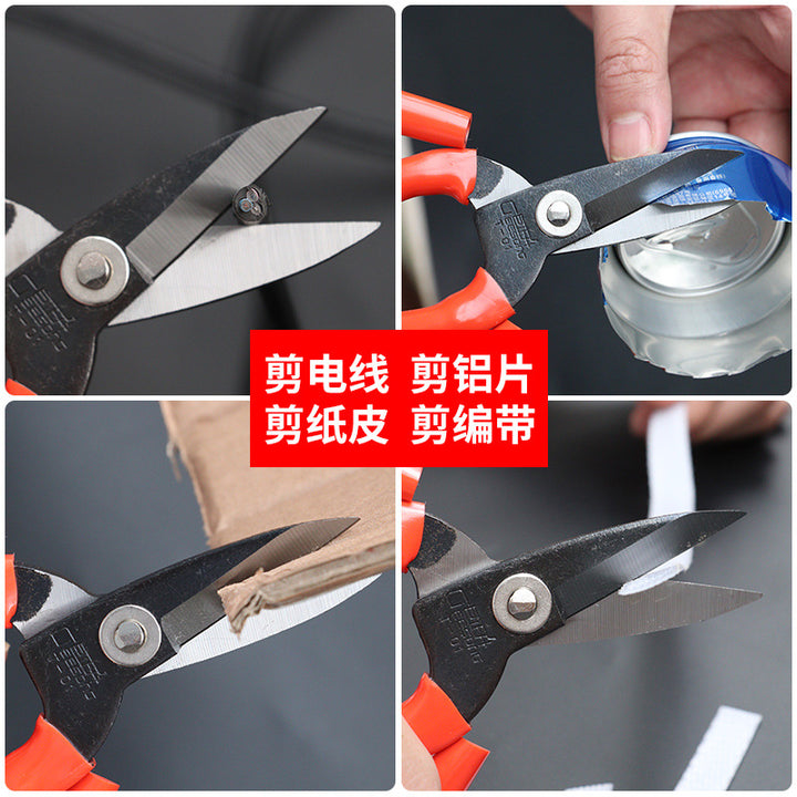 Red casing tin shears, All black short mouth tin scissors, Stainless steel short nozzle scissors |