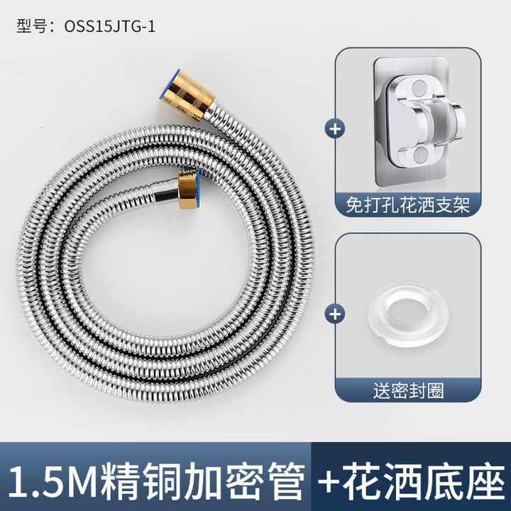 1.5 meters refined copper encryption hose, 2M refined copper encryption hose, 1.5M 304 stainless steel electroplated encryption hose, 2 meters 304 stainless steel electroplated encryption hose, 1.5M silver PVC hose, 1.5M black encryption hose, 2M black encryption hose, 1.5M black PVC hose, 1.5 meters refined copper encryption hose + non-punching bracket, 1.5 meters refined copper encryption hose + shower, 1.5M refined copper encryption pipe + hose + bracket |