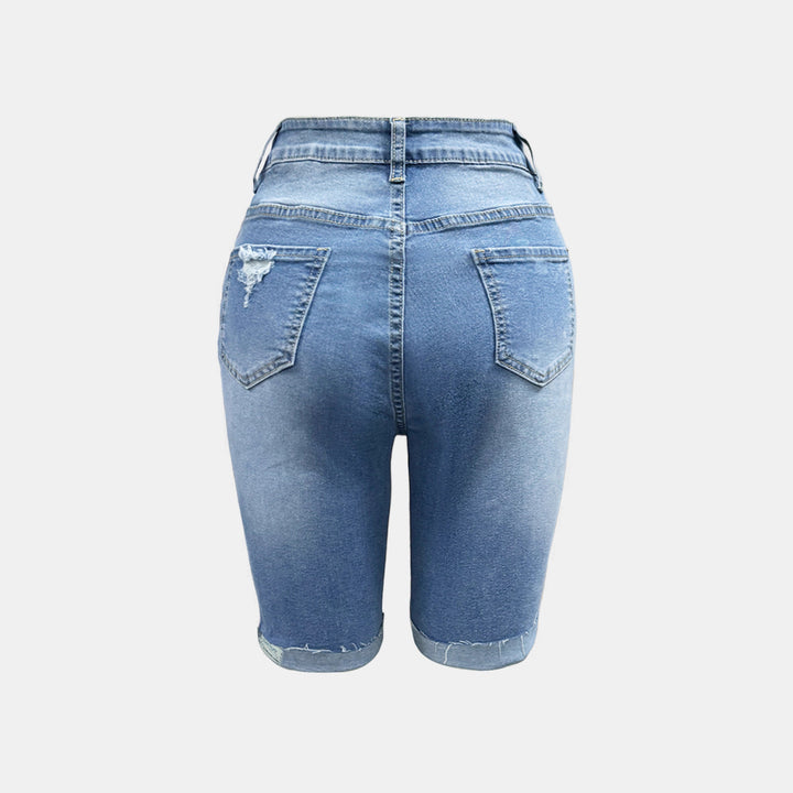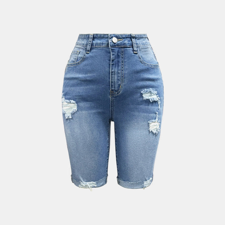 shows long legs, European and American fashion ripped models, Khmer thin washed denim women's summer pants