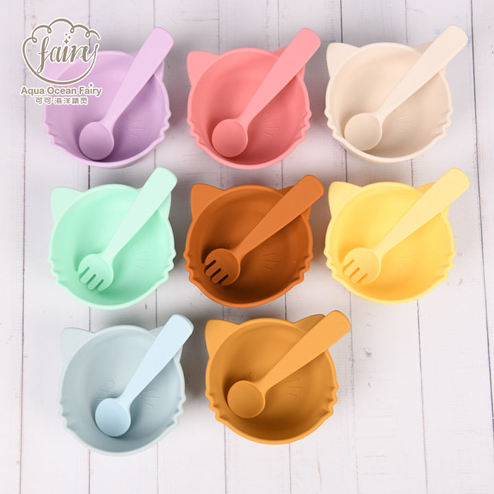Silicone bowl and spoon, eating and feeding cat bowl, suction cup type children's bowl, baby ...