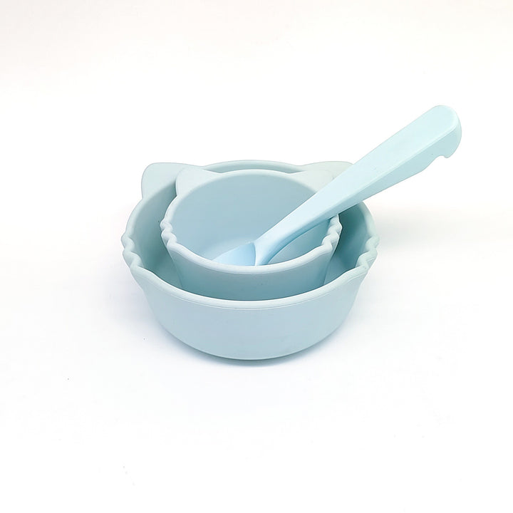 Silicone [cat big bowl + small bowl + square handle spoon] pink blue, Silicone [cat big bowl + small bowl + square handle spoon [random color or contact remarks] |
