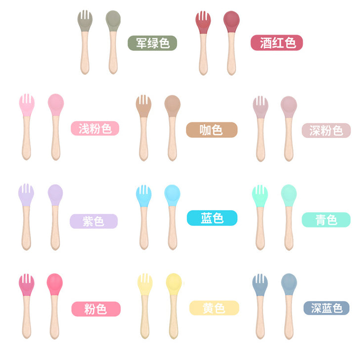 pink, burgundy, Light pink., blue, Yellow, dark blue, cyan, Dark pink., Light blue, purple, Army green, 11-Color matching bib, 11-Color matching bowl, 6-Color matching cup, 11-Color matching silicone fork and spoon, 11-Color matching wooden handle spoon and fork |
