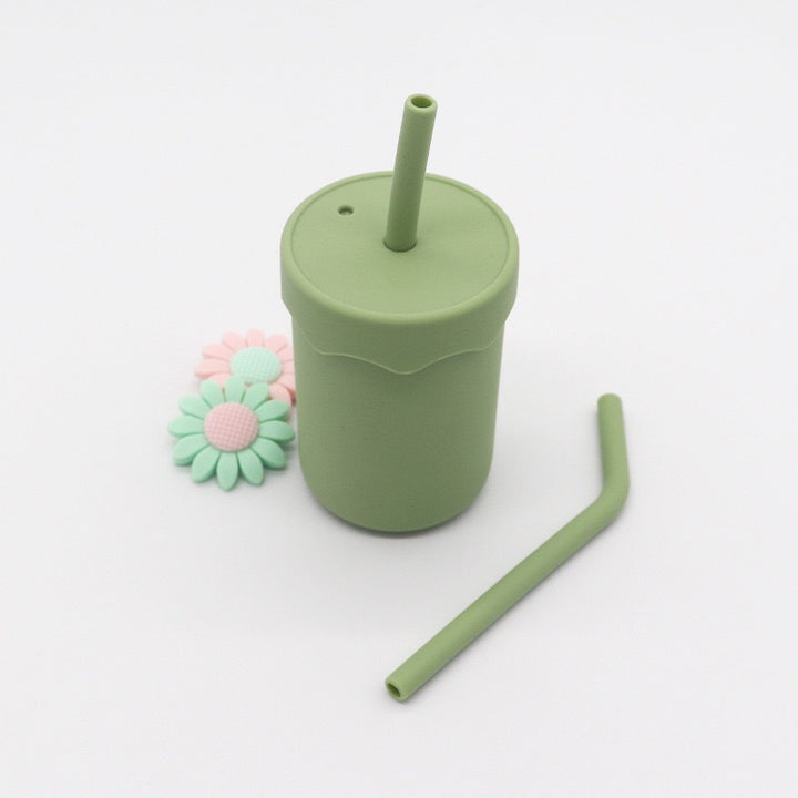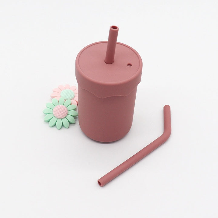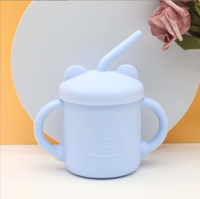 Silicone children's straw water cup baby milk cup baby learning drink cup snack cup kettle maternal and infant products food grade