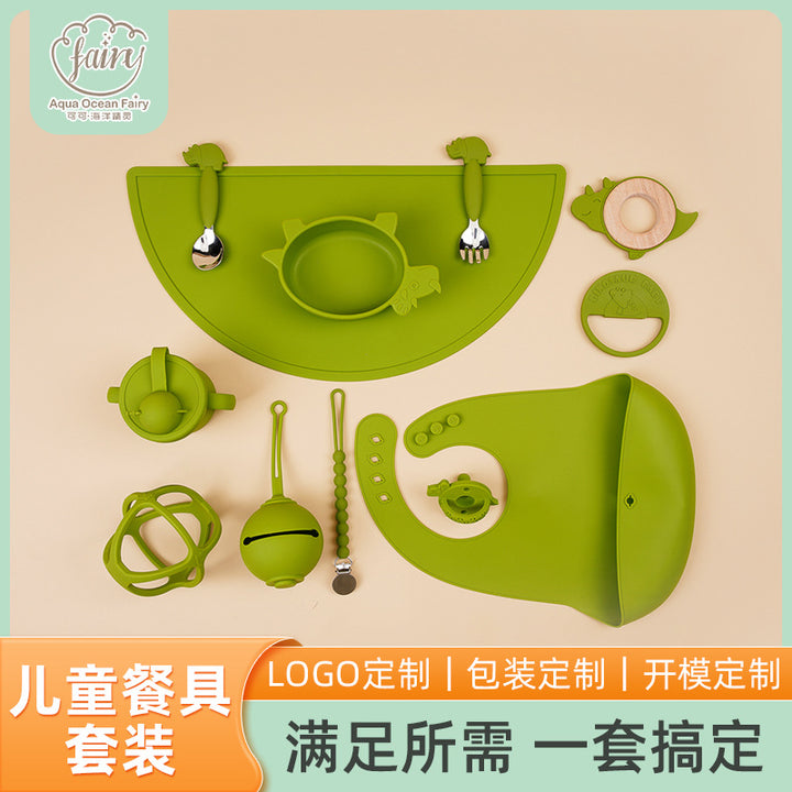 Silicone children's tableware set anti-drop and anti-drop baby food grade silicone tableware set to map custom logo