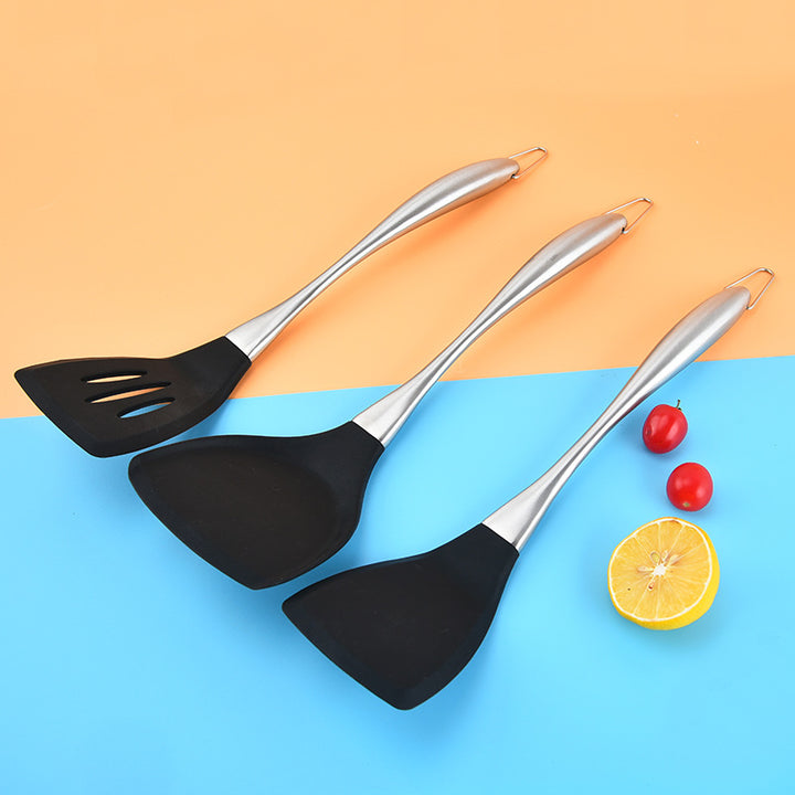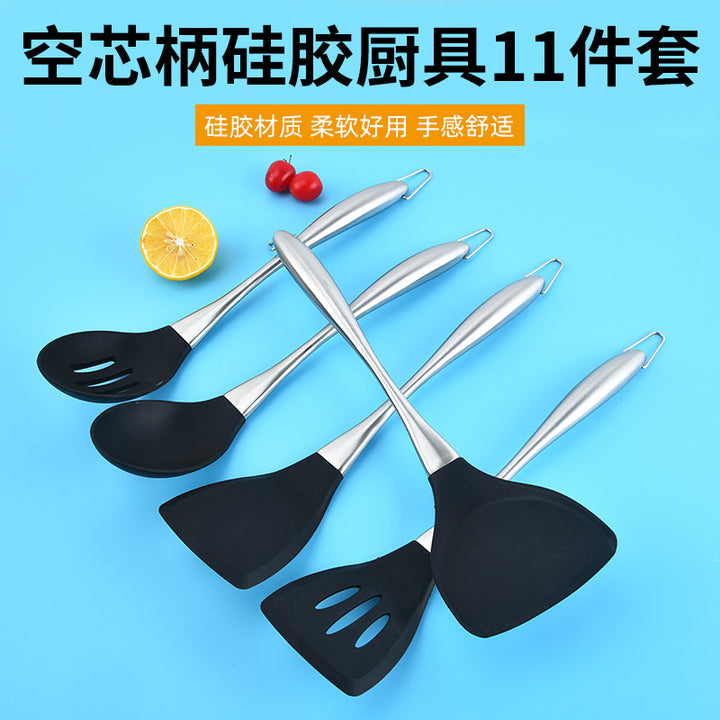 Silicone Kitchenware 11-piece Set Kitchen Cooking Stainless Steel Handle Chinese Shovel Cooking Spoon Household Baking Egg Beater