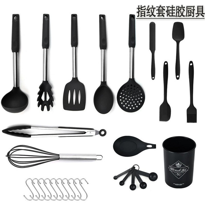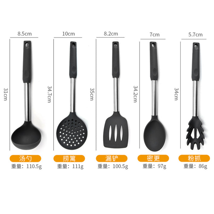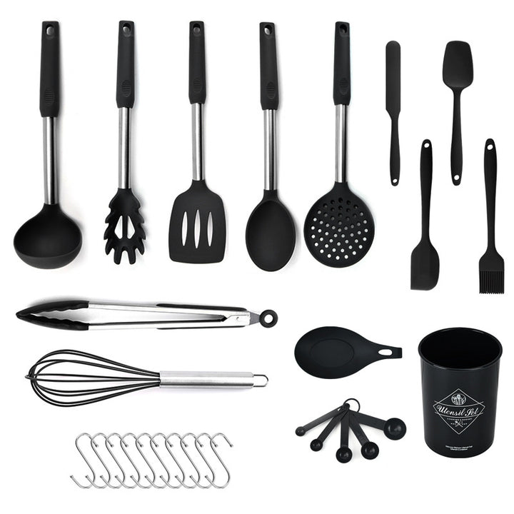 Silicone kitchenware set, stainless steel tube handle cooking spoon and shovel, 28-piece set of kitchen utensils, cross-border non-stick pan shovel.