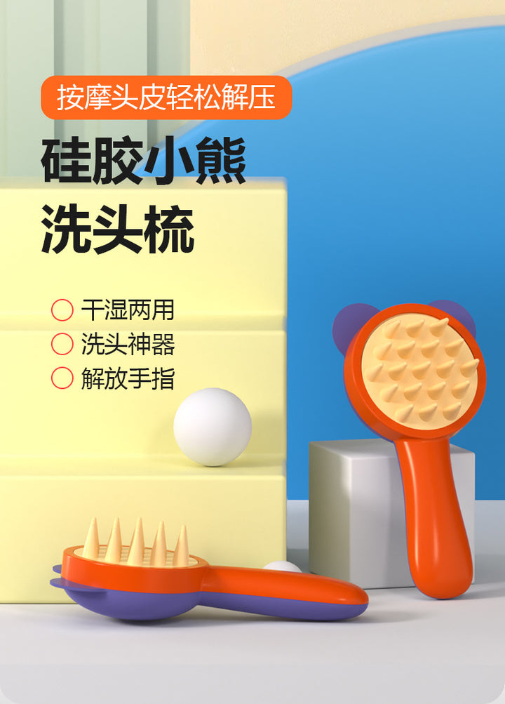 Silicone Shampoo Brush Shampoo Comb Massage Artifact Silicone Coarse Teeth Shampoo Comb with Handle Long Handle Tickling Hair Brush