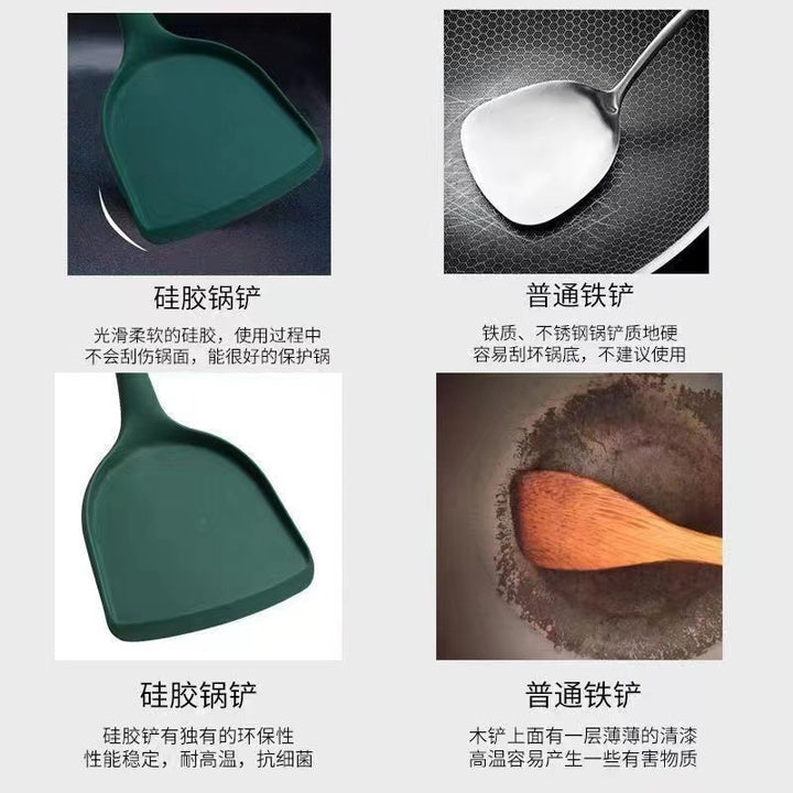 Silicone shovel, non-stick pan special cooking shovel, household silicone spatula wooden handle set kitchen utensils
