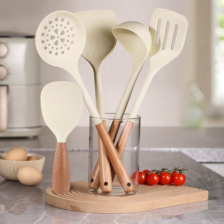 Off-white wooden handle spatula, Off-white wooden handle leak shovel, Off-white wooden handle spoon, Off-white wooden handle fence, Off-white wooden handle rice spoon, Milk green wooden handle spatula, Milk green wooden handle leak shovel, 奶绿色木柄汤勺, 奶绿色木柄捞篱, 奶绿色木柄可立饭勺 |