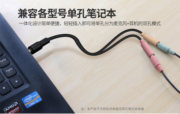 Silver engraving notebook computer earphone 2-in-1 adapter cable head mobile phone audio cable one point and two single hole splitter