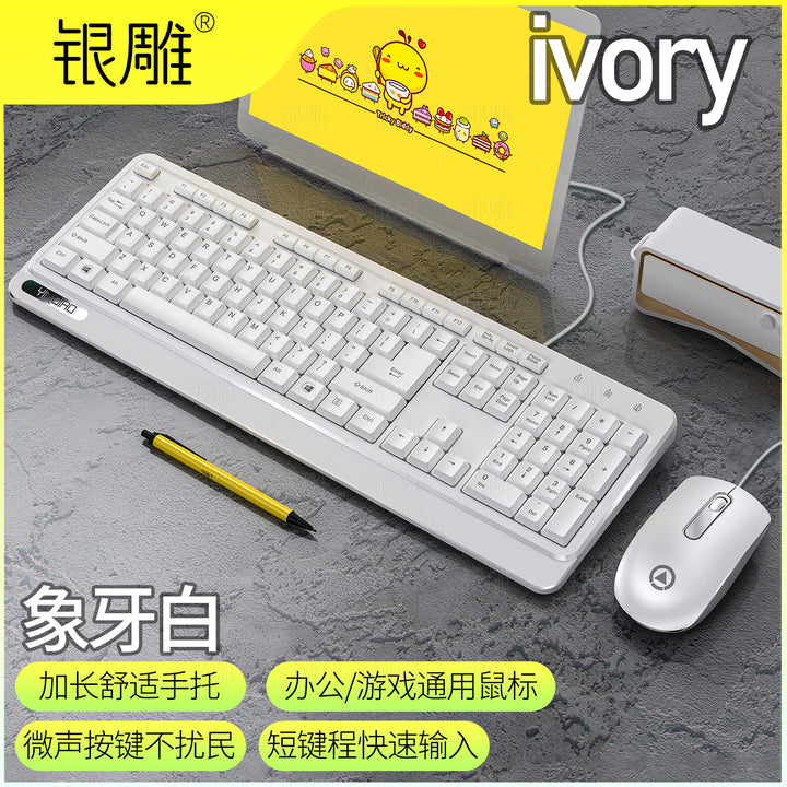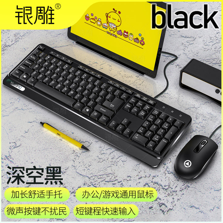 Silver engraving V1 keyboard and mouse set, wired notebook desktop USB office computer accessories, private mold wholesale