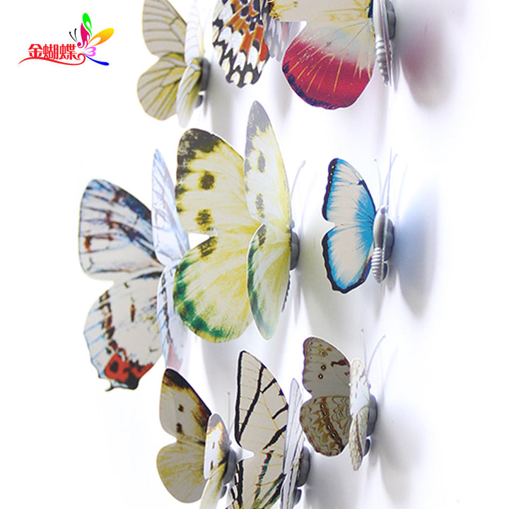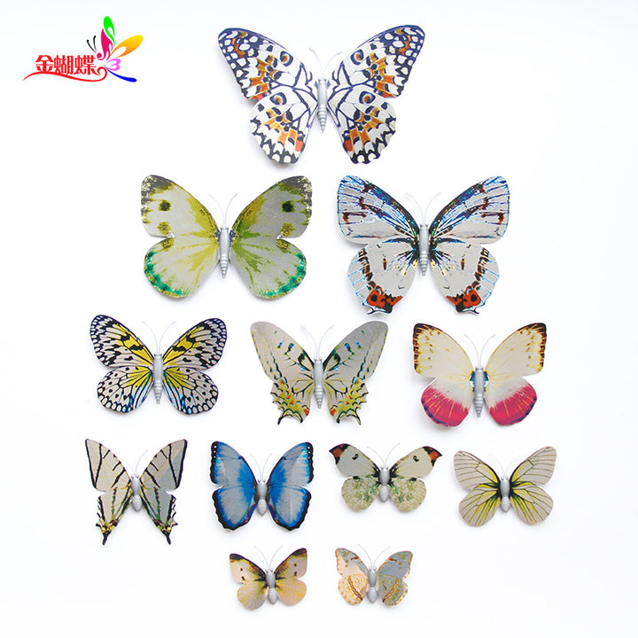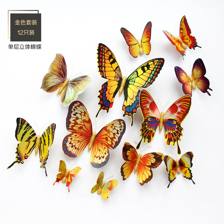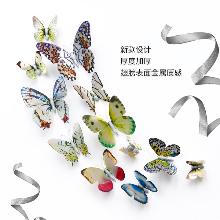 Silver simulated butterfly PVC three-dimensional wall stickers 12 sets of wedding props, home wall decoration stickers
