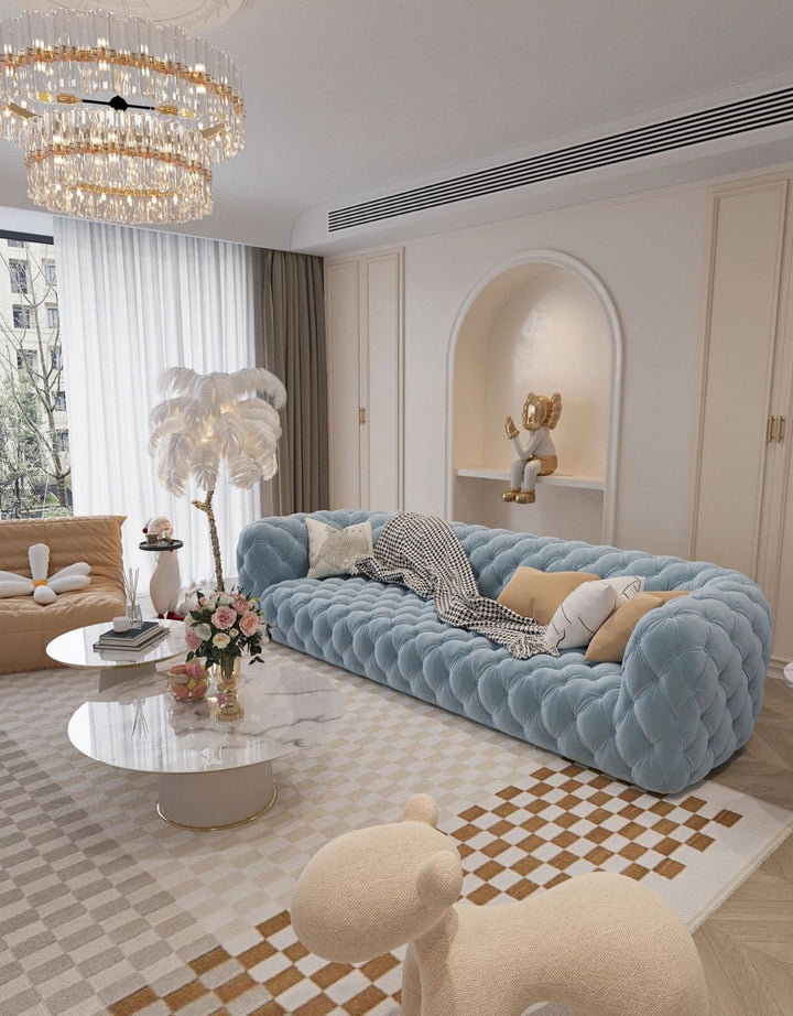 Simple and atmospheric Nordic fabric sofa wabi-sabi wind Italian straight row living room pull buckle multi-person sofa factory direct sales