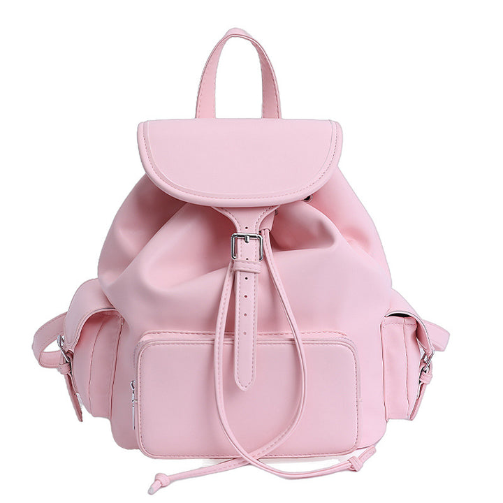 Simple and fashionable soft leather backpack bag 2025 summer new large-capacity backpack college student drawstring schoolbag women's bag