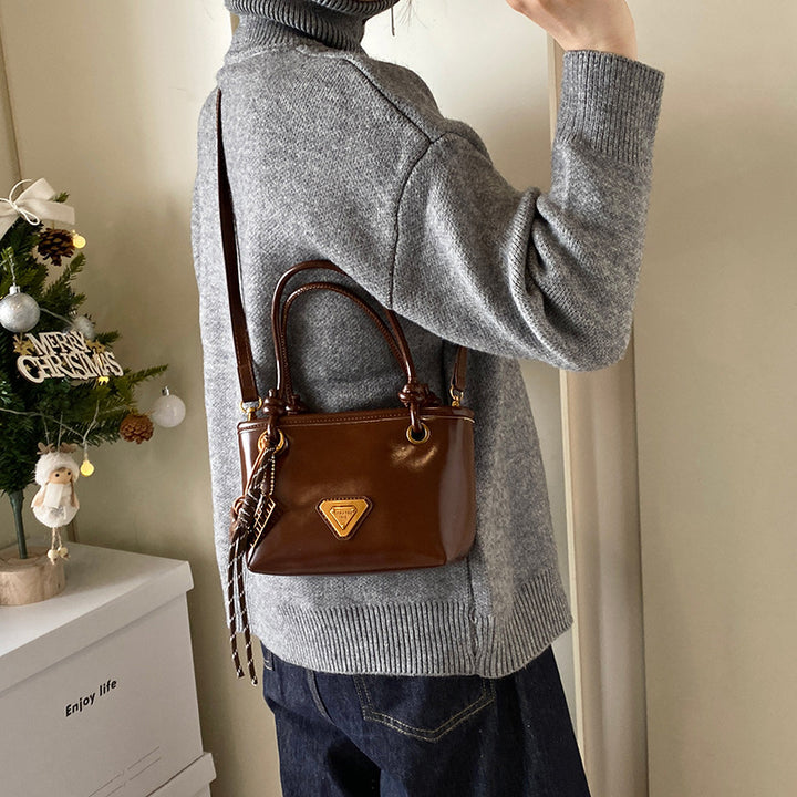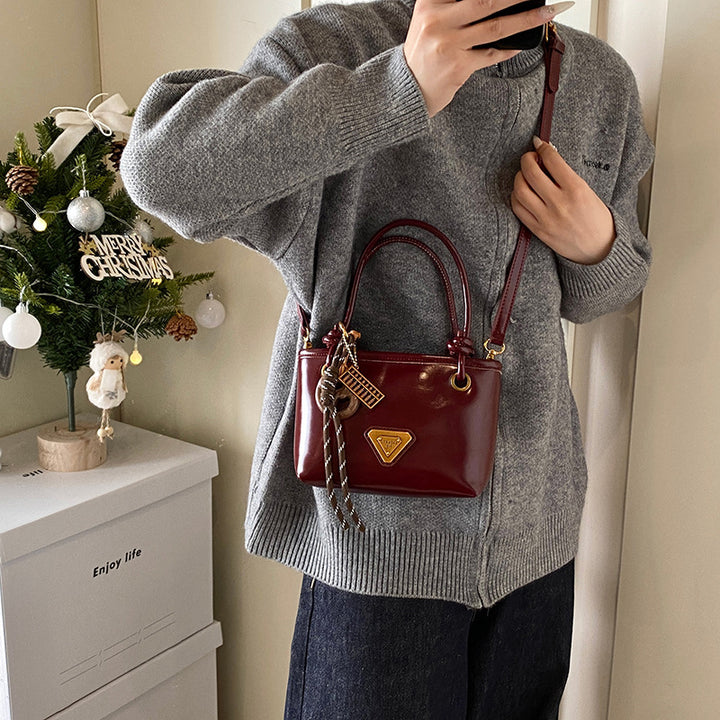 Simple and stylish handbag 2025 winter new retro texture bucket bag trendy solid color commuter shoulder oblique span bag