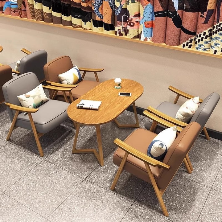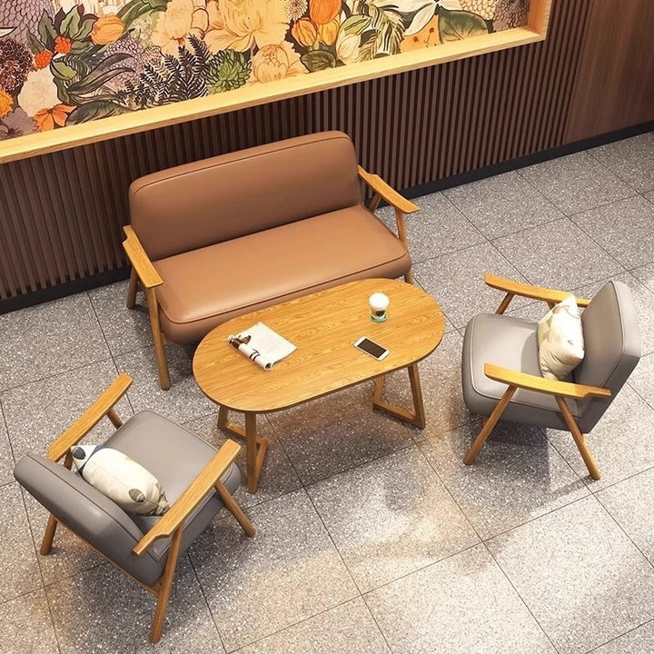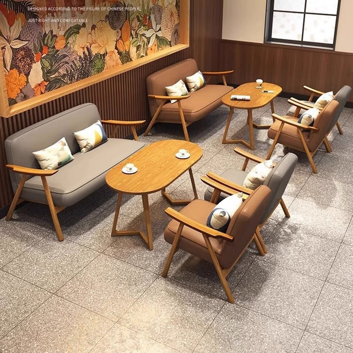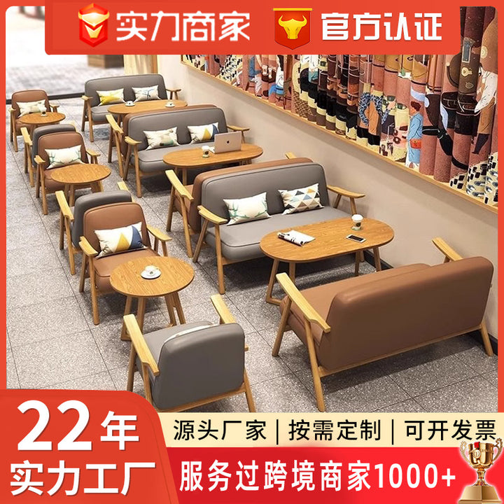 Simple cafe tables and chairs, tea restaurant solid wood lounge area, bistro book bar booth, negotiate double sofa chair