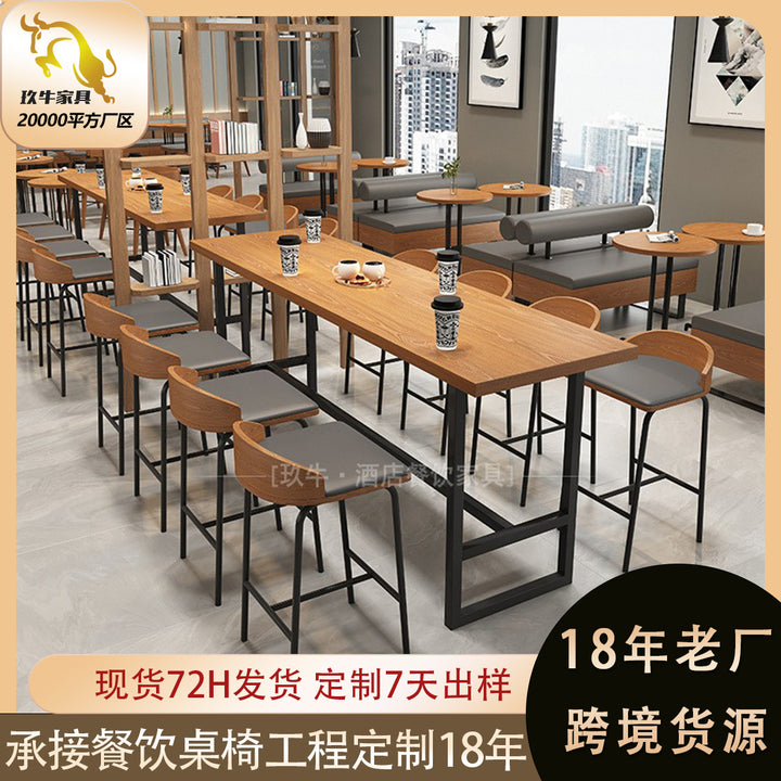 Simple coffee shop tables and chairs a complete set of solid wood restaurant library book bar...