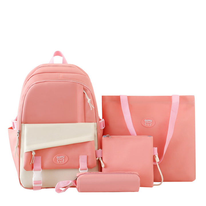 Simple four-piece schoolbag, female primary school backpack, large-capacity junior high school backpack, high-value lightweight backpack