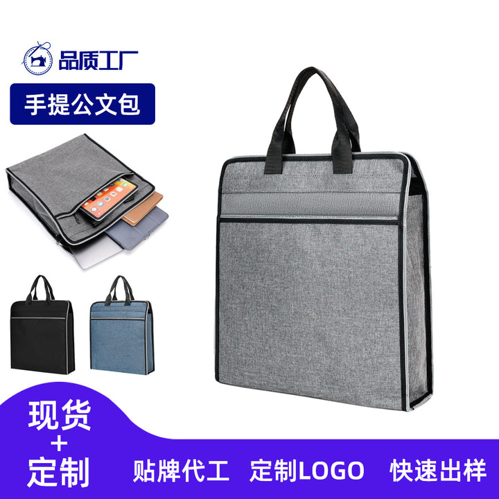 Simple handbag Oxford cloth meeting document bag wear-resistant large capacity 14-inch comput...