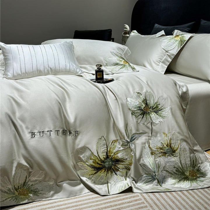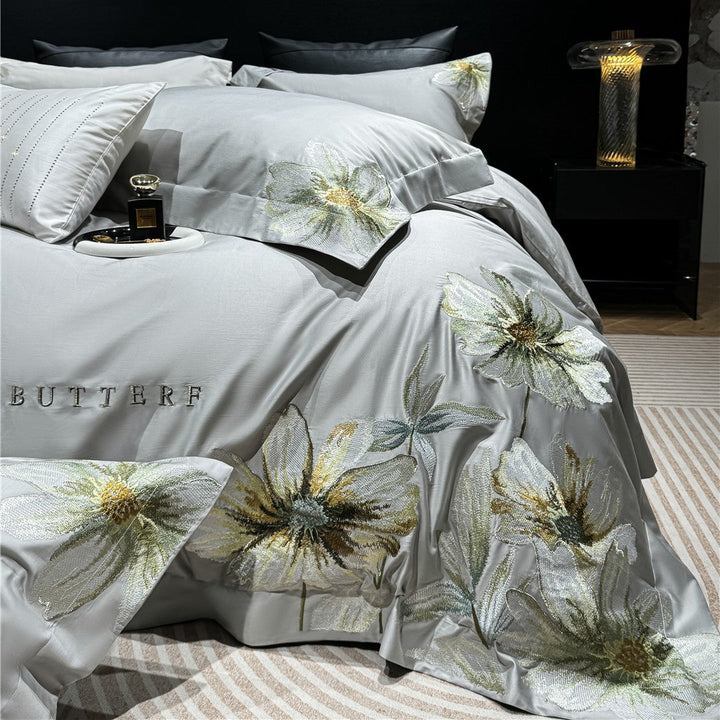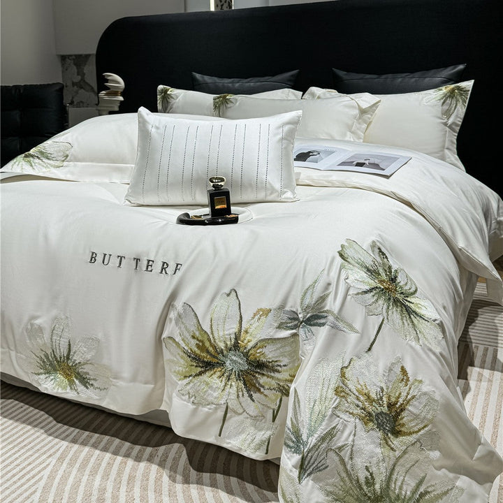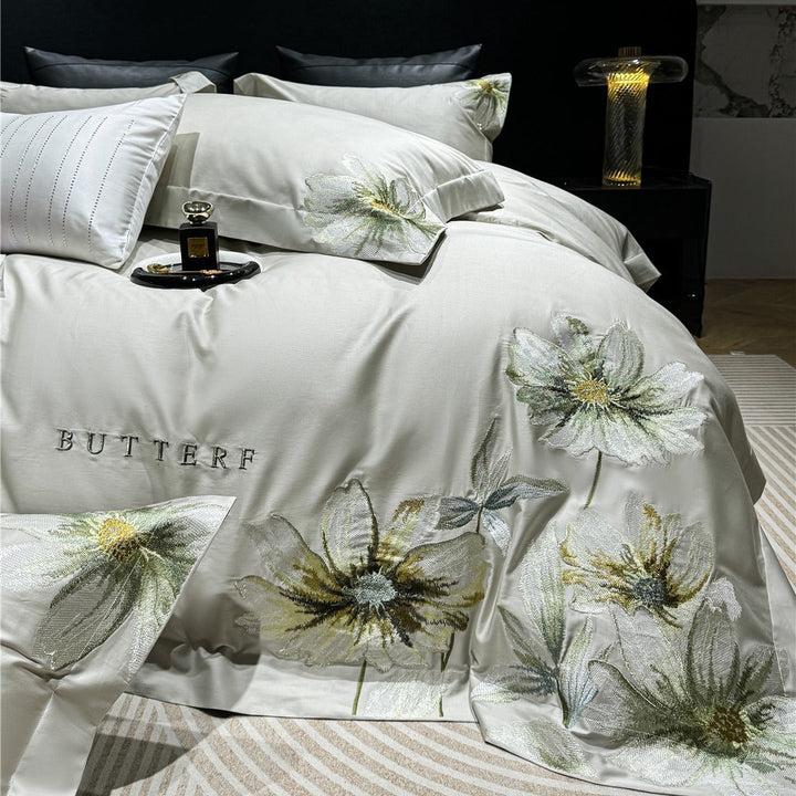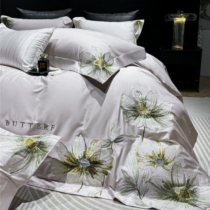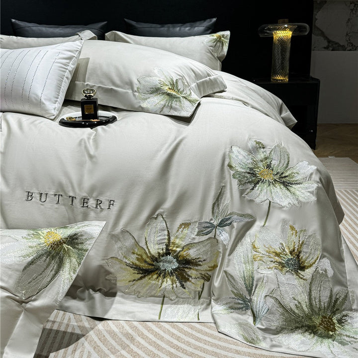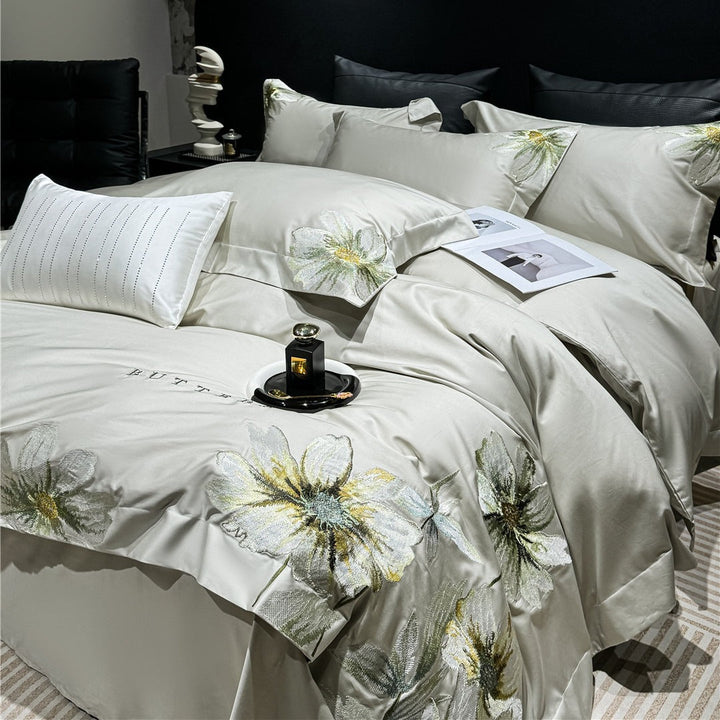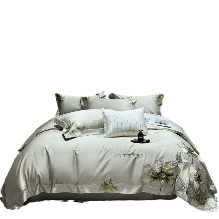 Simple modern flower embroidered bedding, high-grade pure cotton Australian cotton long-staple cotton four-piece home textile Alice