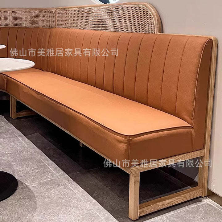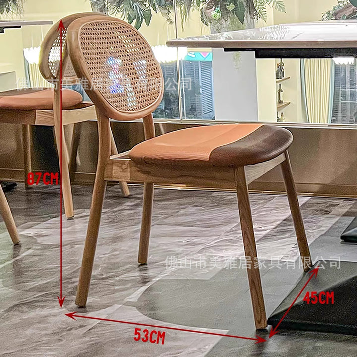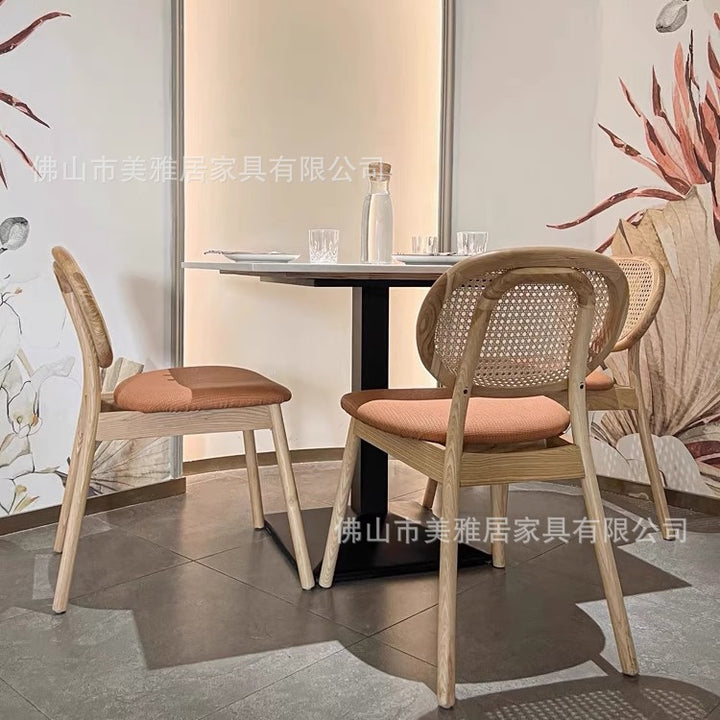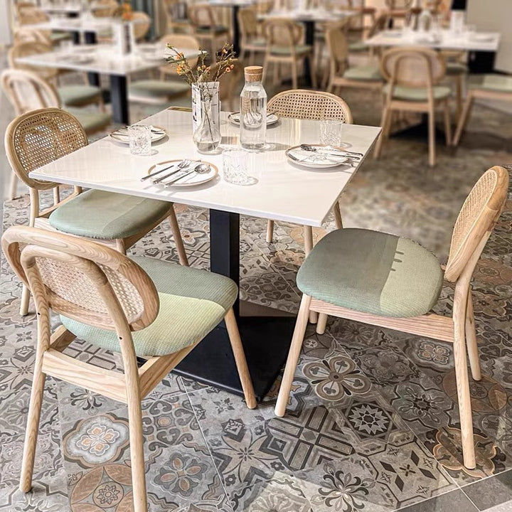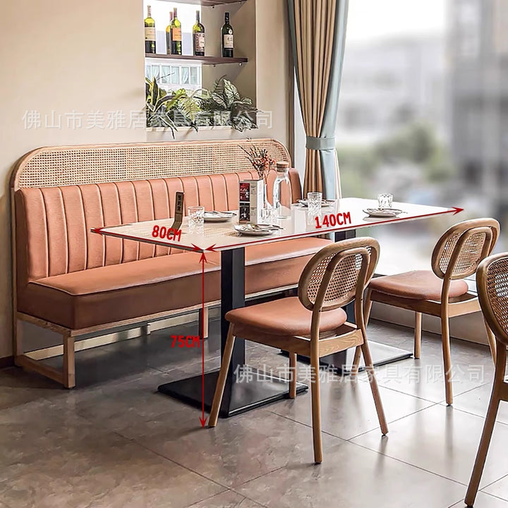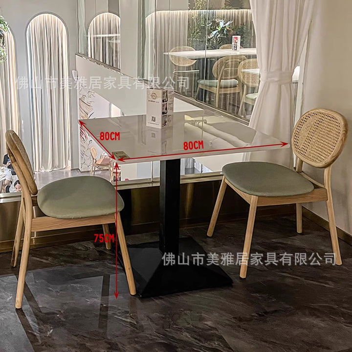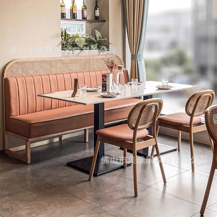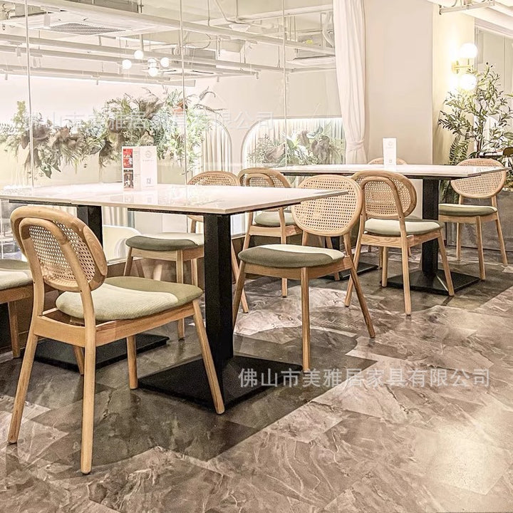 Simple rattan card seat sofa milk tea dessert coffee shop solid wood backrest rattan chair western restaurant casual table and chair combination