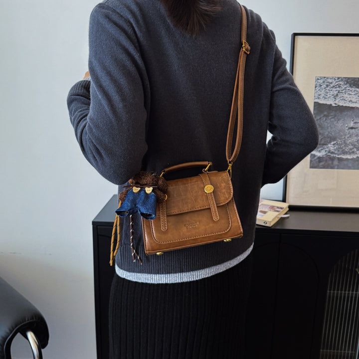 Simple texture college style small square bag women's new 2025 autumn and winter shoulder bag personalized foreign style handbag