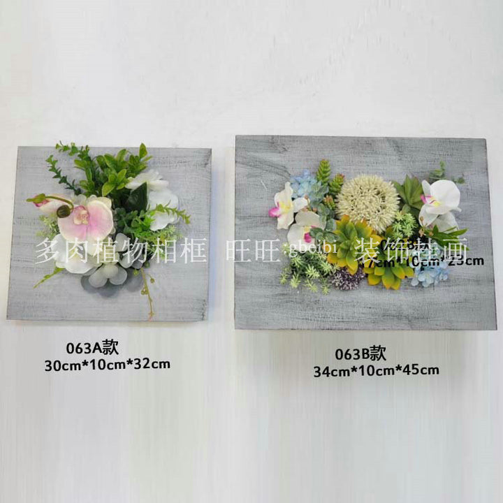 Simulation plant photo frame, rural wall decoration wooden photo frame, living room plant wall, succulent plant model