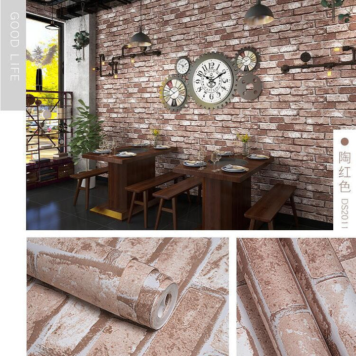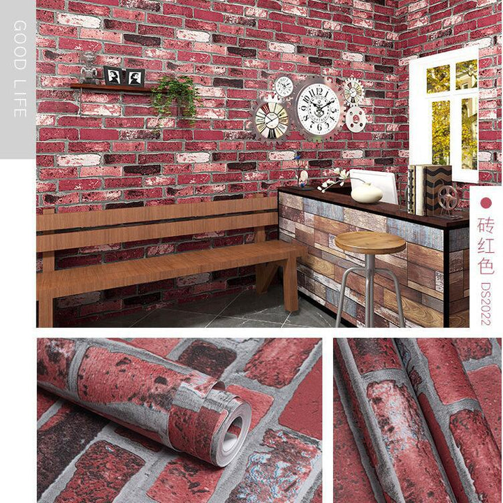 Simulation retro red gray brick pattern 5D three-dimensional non-woven wallpaper living room bedroom project background wallpaper