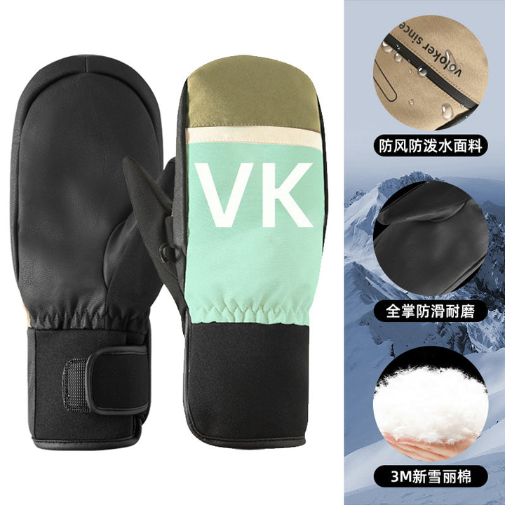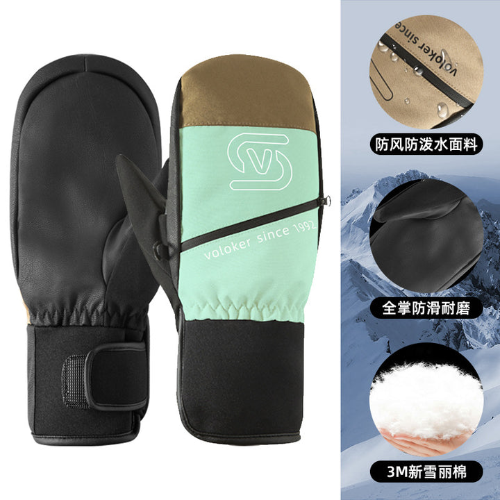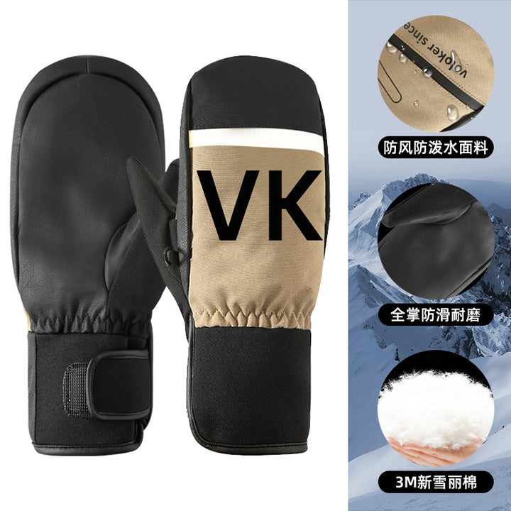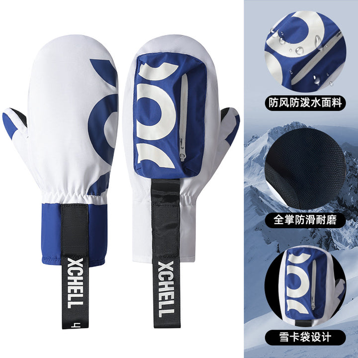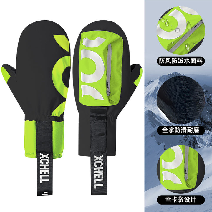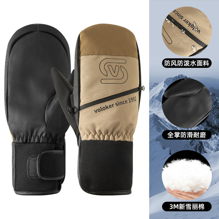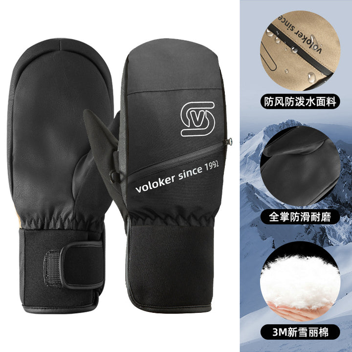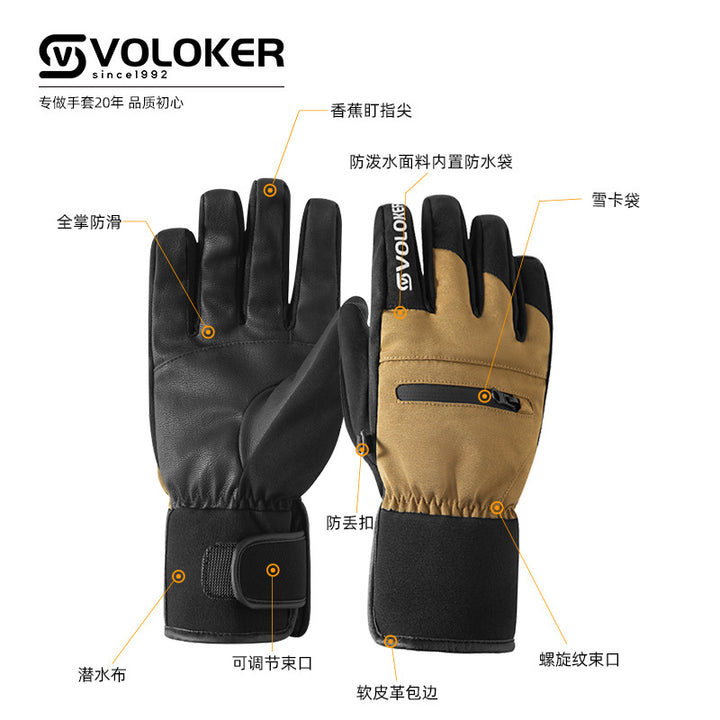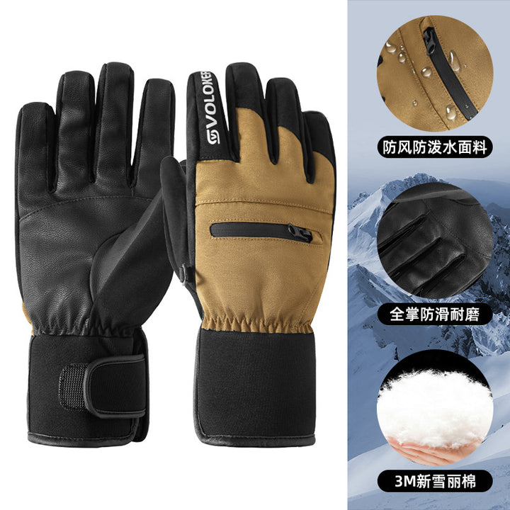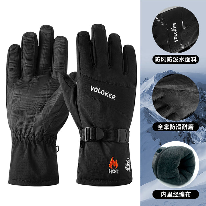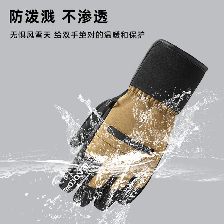 Ski gloves men's winter warm fleece windproof waterproof five-finger touch screen high-end women's winter cycling gloves