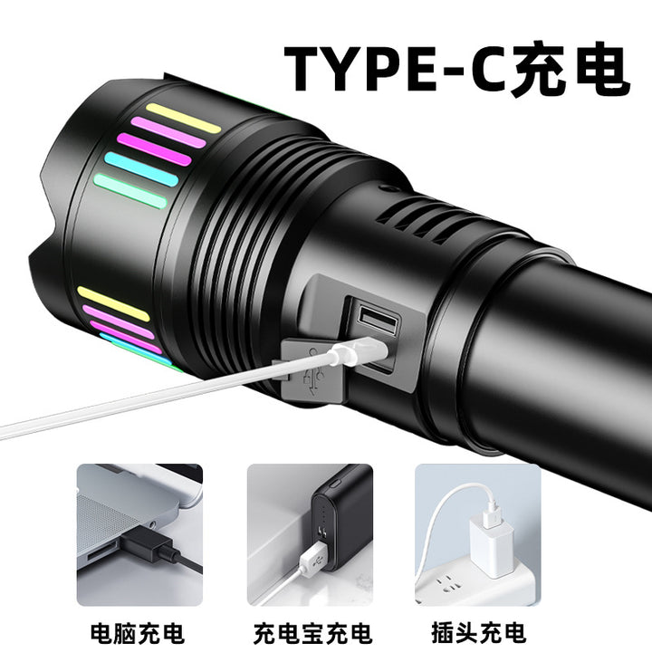 Sky piercing cannon flashlight focusing super strong light charging super bright patrol outdo...
