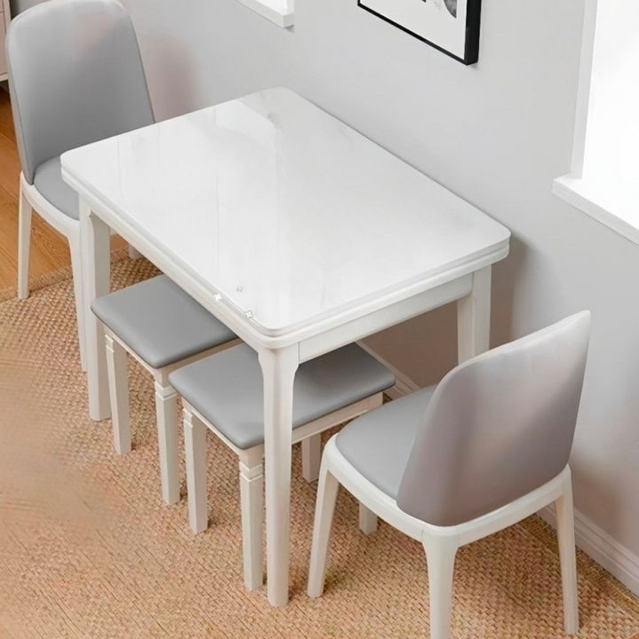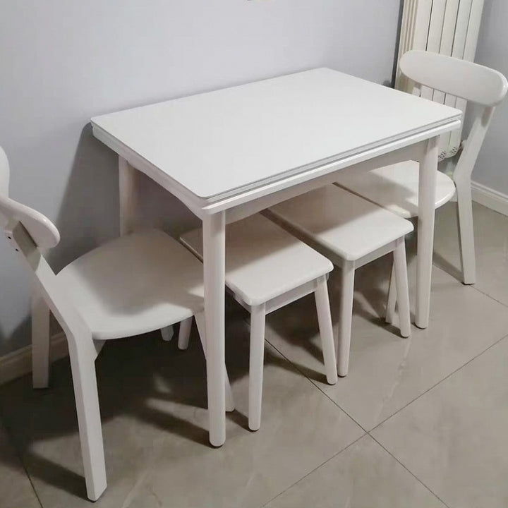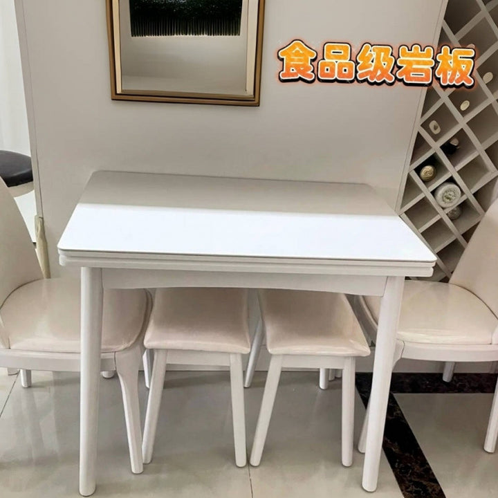 Slate folding dining table household small apartment dining table new foldable solid wood dining table and chair combination cream style white