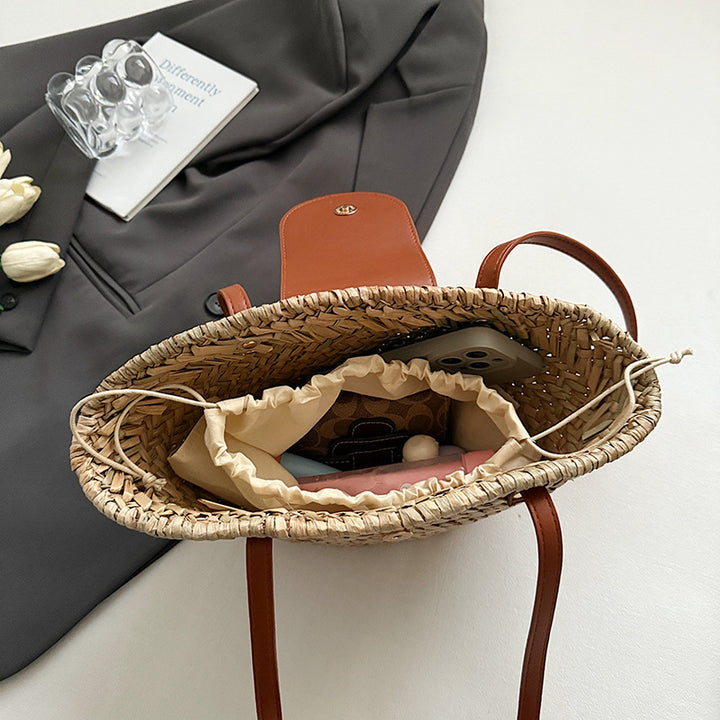 Small bag women's 2025 summer new fashion beach vacation straw bag popular shoulder bag large capacity tote bag