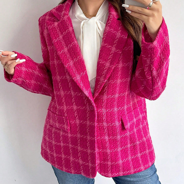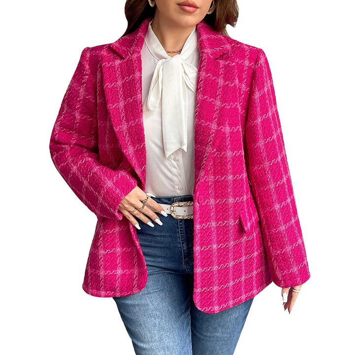 Small batch custom European and American loose plaid jackets spring and autumn woven polyester long-sleeved cardigan jackets look at the picture an...
